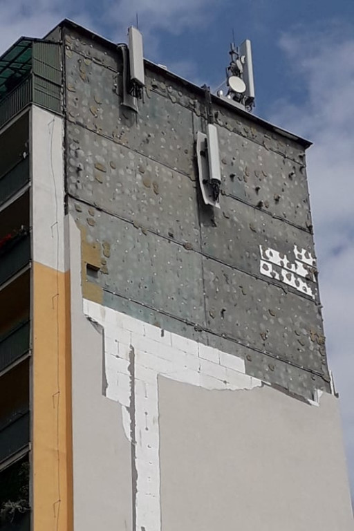 Fragment elewacji odpadł z budynku