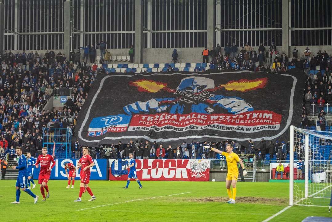W drugiej połowie meczu z Widzewem Łódź kibice Wisły Płock zaprezentowali oprawę. Pojawiła się sektorówka z napisem stylizowaną na pasek TVP INFO: "Trzeba palić wszystkim poza oponami i innymi tego typu rzeczami. Silne zadymienie przy Łukasiewicza 34".
