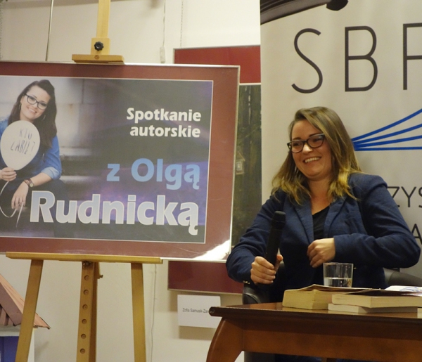 Na książki Rudnickiej w Książnicy trzeba poczekać w kolejce. - Pełno w nich sarkastycznego dowcipu. Kobiety są wyraziste, nie ma żadnych mimoz. Praktycznie każda dochodzi do takiego momentu, kiedy musi przewartościować swoje życie albo wziąć się mocno w garść. Stają się takie, bo już nie mają wyboru? - pytała pisarkę Kraszewska. - To nie wiek świadczy o dojrzałości, bo to tylko cyfra. Zaczynałam swoją pisarską przygodę bardzo młodo. Użalanie się w niczym nie pomoże. W pracy mam kontakt z osobami chorymi, odizolowanymi, samotnymi, często odrzuconymi przez rodzinę. Jako Rudnicka czuję się asystentką, a nie pisarką. Pod koniec studiów koleżanka opowiada wrażenie z wizyty u teściowej. Zobaczyła na półce książki Rudnickiej. Odpowiedziałam no co za zbieg okoliczności. Ona dalej drąży, czemu w takim razie na okładce jest moje zdjęcie. Była zaskoczona, że nic nie powiedziałam. Pisanie jest dla mnie elementem pobocznym. Swoich podopiecznych jednak nie odważyłabym się opisać. Przy osobach ze schizofrenią czy z depresją długo się buduje zaufanie. Mogłabym tylko zaszkodzić. W życiu nie tolerują hipokryzji, ale wrednych ludzi uwielbiam. Chyba to jest ta moja inspiracja do ironicznych dialogów.