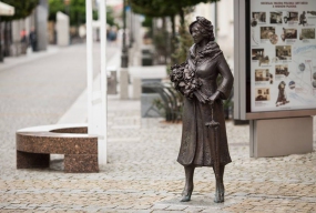 Witamy ją na Tumskiej, jeśli tylko zajrzymy do centrum miasta. Mirę Zimińską-Sygietyńską pewnie nazwalibyśmy dzisiaj celebrytką. Bo kto wie, że płocczankę przed wojną ubierali najlepsi krawcy, jak przystało na gwiazdę kabaretową i filmową. Ale też taką z dystansem, potrafiącą śmiać się z samej siebie, która myślami czasem powracała do rodzinnego Płocka, kiedy w domu nie było już tak zasobnie. Ona tkała swoją legendę, chociaż po wojnie już w inny sposób. Zeszła ze sceny, bo tak chciała. Wybrała zespół ludowy, który od podstaw współtworzyła wraz z mężem. Z czasem, w 1955 roku została panią dyrektor zespołu „Mazowsze”, a kiedy poprosiła, zaraz przynoszono jej rodzinne drzewo genealogiczne. Odeszła od nas w 1997 roku, mając 96 lat (dodajmy jednak, że ta data urodzin bywała podważana, a ona mogła być starsza nawet o 6 lat).