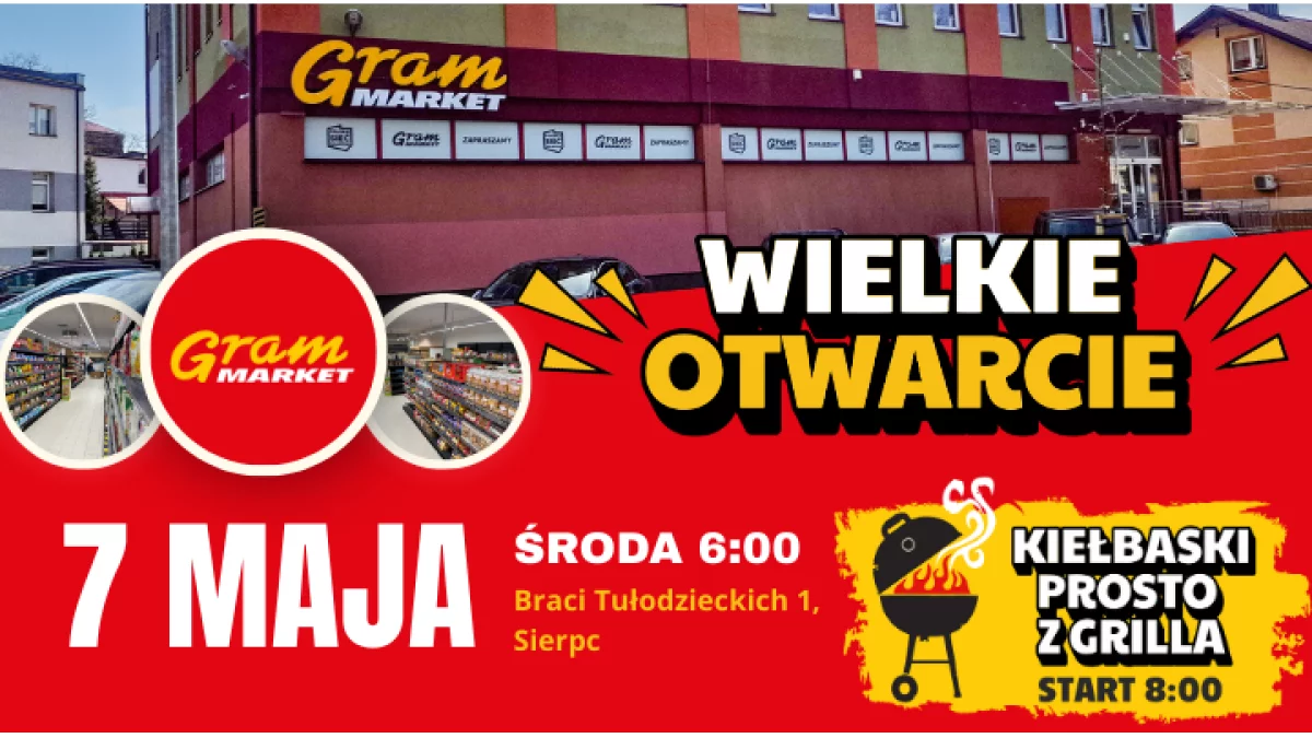 Sieć "Gram Market" została założona w 2001 r. Jest to stuprocentowo polski kapitał, a główna siedziba firmy od lat znajduje się w Płocku. Do tej pory otwarto 35 placówek w trzech województwach: mazowieckim, łódzkim i kujawsko-pomorskim. Nowy sklep jest trzecim w Sierpcu, a więc oznacza to jeszcze lepszy dostęp dla okolicznych mieszkańców do tanich, wysokiej jakości zakupów. Tradycyjna lada mięsna z bardzo dużym wyborem świeżych mięs, wędlin i serów, dostarczanych podczas codziennych dostawy. Tradycyjnie wypiekane pieczywo i wyroby cukiernicze z lokalnych piekarni i cukierni. Jak zawsze dobrze zaopatrzone stoisko z warzywami i owocami. Dla swoich klientów sklep zapewnił duży parking.