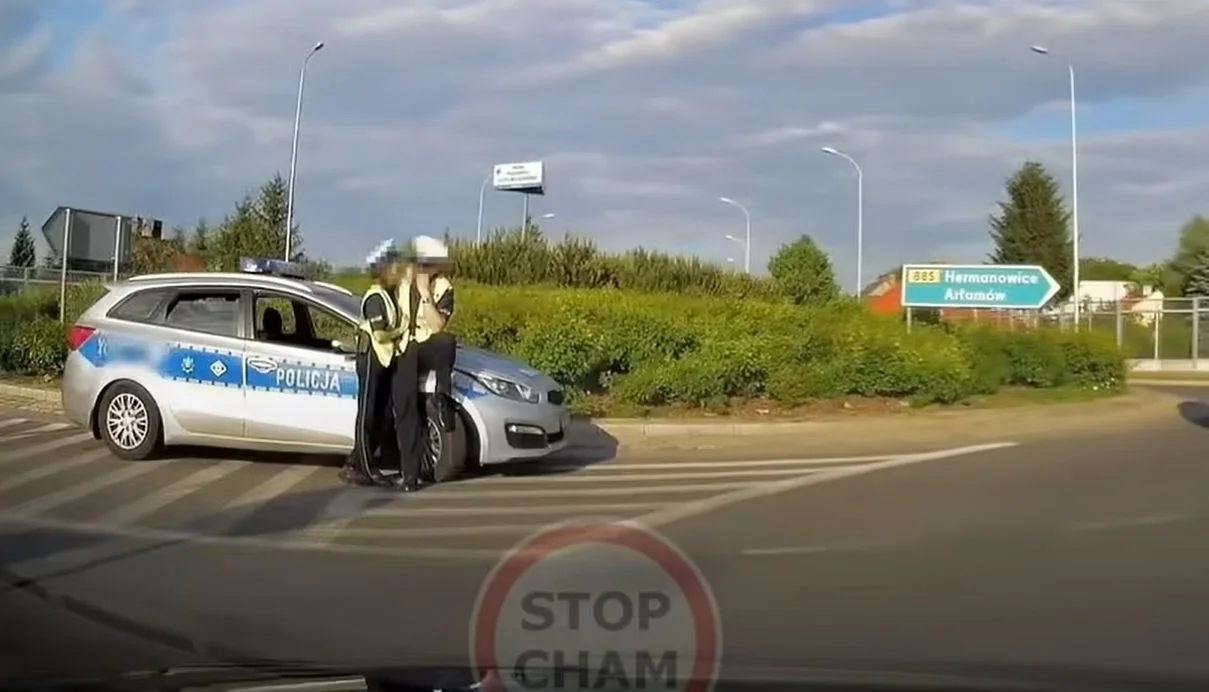"Obściskiwanie policjantów na rondzie. Policjant wraz z policjantką stoją/siedzą na rondzie obok radiowozu. Służba nie drużba. Zlecone zadnie należy wykonać. Coś tutaj jest nie tak ;/ ..., ale policjant też człowiek." Tak opisany jest filmik, który został nakręcony na Podkarpaciu i trafił na kanał "Stop Cham".