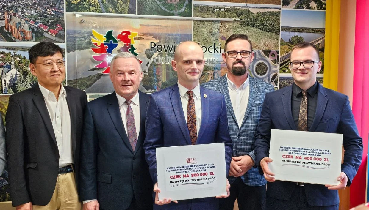 Darowizna, którą przekazali przedstawiciele Hyundai Engineering Poland sp. z o. o. oraz Tecnicas Reunidas S.A. (wykonawca kompleksu Olefin III przy Orlenie) zostanie przeznaczona na zakup sprzętu niezbędnego do naprawy dróg na terenie powiatu płockiego.