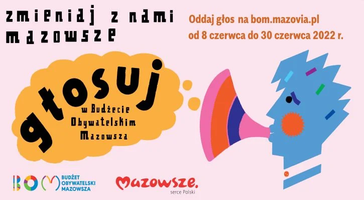 To, które projekty zostaną zrealizowane, zależy od mieszkańców Mazowsza. Głosować można na bom.mazovia.pl do 30 czerwca br. Każdy mieszkaniec Mazowsza będzie mógł oddać dwa głosy – jeden na projekt ogólnowojewódzki i jeden na podregionalny. W imieniu osoby niepełnoletniej głos oddaje opiekun prawny. Głosować będzie można za pośrednictwem platformy internetowej z telefonu lub komputera. Osoby nieposiadające telefonów lub komputerów będą mogły oddać głos w siedzibie urzędu marszałkowskiego i w jego delegaturach. Projekty wybrane przez mieszkańców zostaną zrealizowane przez samorząd województwa w 2023 r. Na ten cel władze regionu zarezerwowały 25 mln zł. Wszystkie projekty znajdują się na stronie internetowej Budżetu Obywatelskiego Mazowsza.