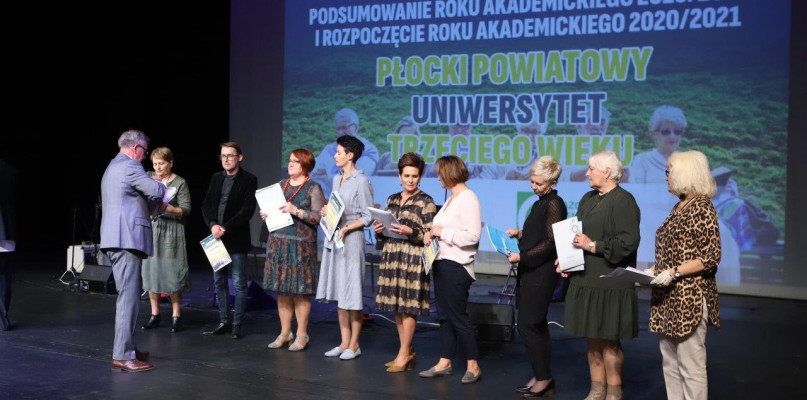 Była to okazja zarówno do podsumowania roku akademickiego 2019/2020, ale przede wszystkim rozpoczęcia nowego 2020/2021. Słuchacze i absolwenci Płockiego Powiatowego Uniwersytetu Trzeciego Wieku otrzymali dyplomy ukończenia realizowanych szkoleń i kursów, a wszyscy obecni na sali wysłuchali wykładu dr Grzegorza Gołębiewskiego – „Płock i Ziemia Płocka a czas niepodległości”. Dodatkowo inauguracja była okazją do podziękowania za wsparcie działań Płockiego Powiatowego Uniwersytetu Trzeciego Wieku i pomoc organizacyjną w lokalnych inicjatywach dla Dyrektor Wydziału Edukacji Kultury i Spraw Społecznych Małgorzaty Struzik oraz Dyrektor Wydziału Rozwoju Gospodarczego i Promocji Karoliny Koper. Prowadzący uroczystość Prezes Andrzej Barciński, wraz z Wiceprezesem Wiesławem Żmudą, wręczyli także podziękowania dla koordynatorów powiatowych, m. in. dla Radnej Powiatu Płockiego Magdaleny Woja. W uroczystej inauguracji uczestniczyli również Wicestarosta Iwona Sierocka, Radna Powiatu Płockiego Ewa Kowalak oraz Członek Zarządu Powiatu Paweł Bogiel. Część artystyczną uświetnił zespół Tourklezz, który zaprezentował zgromadzonym gościom klimat muzyki klezmerskiej.