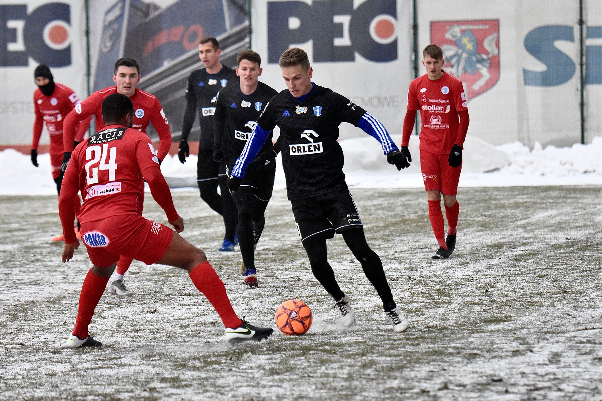 Atak zimy trwa i do końca nie wiadomo było czy sparing z Wigrami Suwałki odbędzie się na płycie głównej czy boisku bocznym. Otatecznie udało się zagrać na murawie stadionu Pogoni Siedlce. Spotkanie zostało przesunięte o 30 minut, a zawodnikom przyszło grać na zaśnieżonej murawie. To nie są dogodne warunki do grania w piłkę nożną i trudno oczekiwać, żeby Nafciarze grali na takiej murawie w lidze.