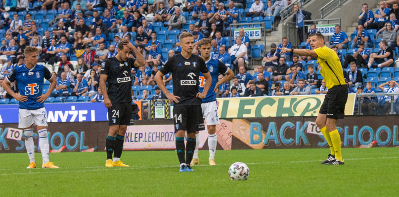 Tydzień temu podopieczni Radosława Sobolewskiego zagrali bardzo słabe spotkanie ze Stalą Mielec. Szkoleniowiec w nowym sezonie próbuje ustawienie z trzema obrońcami, ale w 1. kolejce wyglądało to po prostu mizernie. Trener jednak się nie zraził i w Poznaniu znów postawił na ustawienie 3-4-3, choć wprowadził modyfikację. Paweł Żuk początkowo usiadł na ławce, a na prawym wahadle zaczął Damian Zbozień.