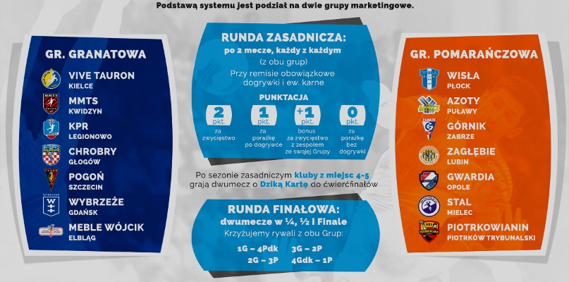 Orlen Wisła trafi do grupy pomarańczowej wraz z Azotami Puławy, Górnikiem Zabrze, Zagłębiem Lubin, Gwardią Opole, Stalą Mielec i Piotrkowianinem Piotrków Trybunalski. Każde zwycięstwo z drużyną ze swojej grupy będzie nagradzane trzema punktami. W przypadku zwycięstwa z drużyną z grupy granatowej Wisła otrzyma 2 punkty.