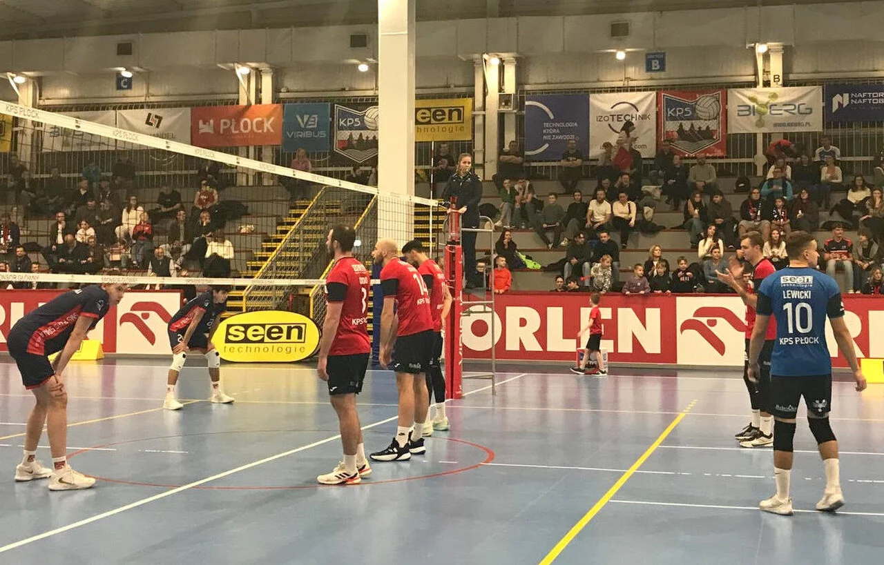 W pierwszym secie sobotniego pojedynku początek był dość wyrównany, ale KPS odskoczył na 3 punkty (8:5). Przy stanie 20:17 Błonie poderwało się do walki, na tablicy pokazał się wynik po 20! Przy remisie po 21 nastąpił mały "odjazd" zespołu z Płocka na 24:21, a set po ataku Przemysława Czado z lewego skrzydła został wygrany przez gości 25:22.