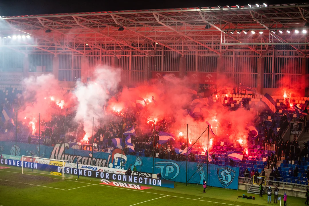 Kiedy dym opadł po raz drugi, Nafciarze wreszcie zdobyli bramkę. Po dośrodkowaniu z rzutu rożnego piłka spadła pod nogi Kacpra Laskowskiego, a ten huknął bez zastanowienia i zdobył swoją pierwszą bramkę w barwach Wisły Płock.