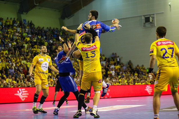 Początek spotkania nie zapowiadał pogromu. Wisła ku zaskoczeniu miejscowych wyszła na prowadzenie 3:1. Potem jednak było już tylko gorzej. Jak w transie bronił Sławomir Szmal, nafciarze nie potrafili wykorzystywać gry w przewadze, gubili się w obronie, a trener Manolo Cadenas tracił kontrolę nad własnym zachowaniem, czym osłabił zespół otrzymując karę 2 min. za krytykowanie decyzji sędziów. Do przerwy Vive prowadziło 15:11.