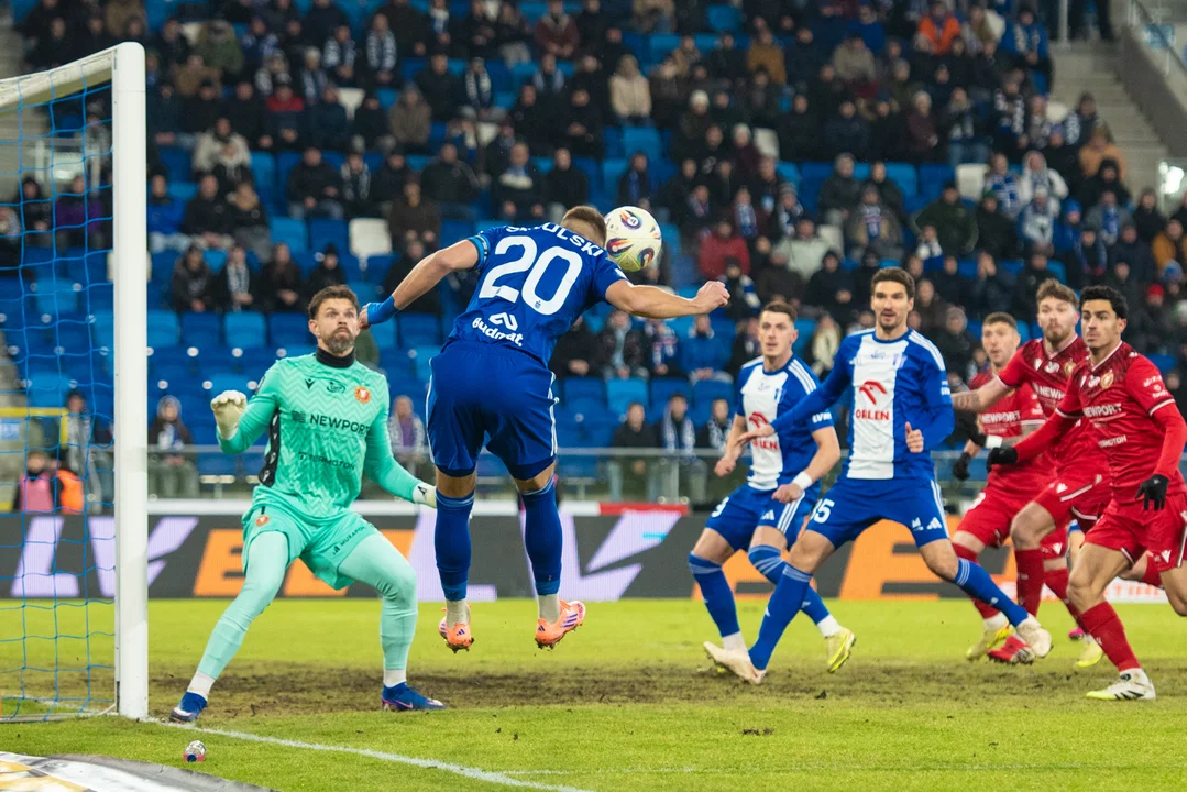 Pojawiły się okazje, ale większe zaangażowanie w ofensywę napędzało grę Widzewa. Rozkręcał się Fornalczyk, który uderzył m.in. w poprzeczkę. Chwilę później, po kolejnej kontrze, Julian Shehu powinien "zamknąć" mecz. Pomocnik w 69. trafił w poprzeczkę.