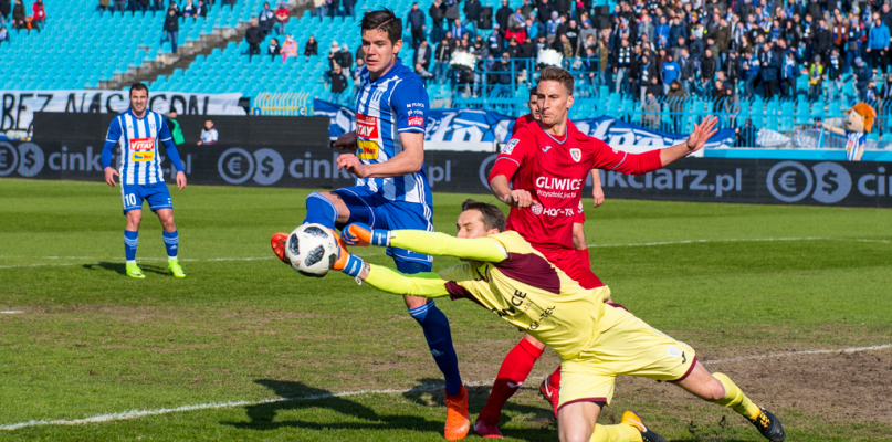 Piast bazował na dośrodkowaniach w pole karne, ale do górnych piłek pewnie wychodził Dahne. Po jednej z akcji Gerard Badia miał futbolówkę na 12. metrze. Hiszpan huknął z całej siły, ale trafił tylko w poprzeczkę. Kibice nie mogli narzekać na poziom widowiska, choć do przerwy brakowało najważniejszego, czyli bramek.