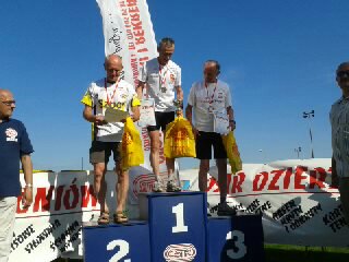 generalnej. Tradycyjnie już „przebił” go jego ojciec Stanisław. Od miesięcy zmaga się z bólem i kontuzją barku, ale zdecydował się na walkę. W końcu triathloniści to ludzie z żelaza... Z Dzierżoniowa Stanisław Dymek wrócił z trzecim miejscem i brązem w kategorii M-50. Wynik ten jednak nie usatysfakcjonował płockiego Ironmana, ponieważ w poprzednim roku wygrał swoją grupę wiekową z kilkuminutową przewagą.