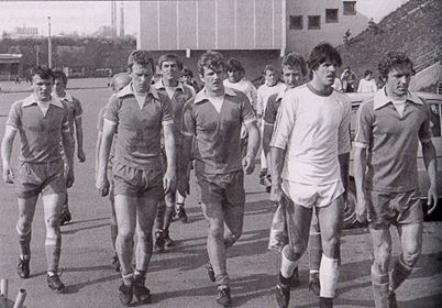 Na zdjęciu: piłkarze po zwycięskim meczu z Arkonią Szczecin 1:0 w 1981 r., fot. POKiS