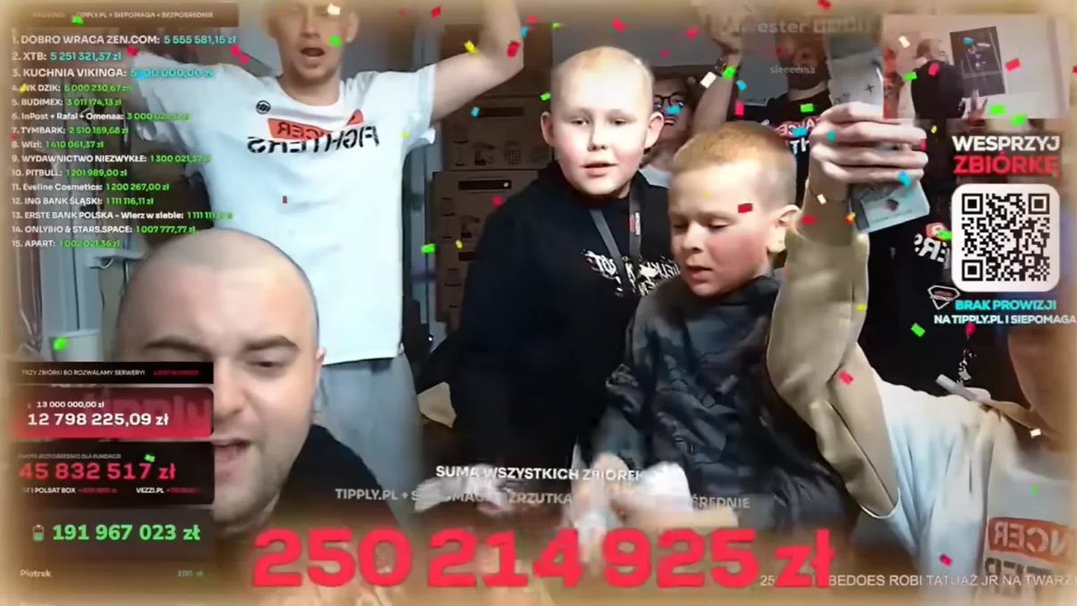 Akcję przez cały czas wspierały firmy i osoby prywatne. Streama zakończono po uzbieraniu 250 milionów złotych - to nowy światowy rekord wpłat podczas charytatywnej transmisji na żywo.