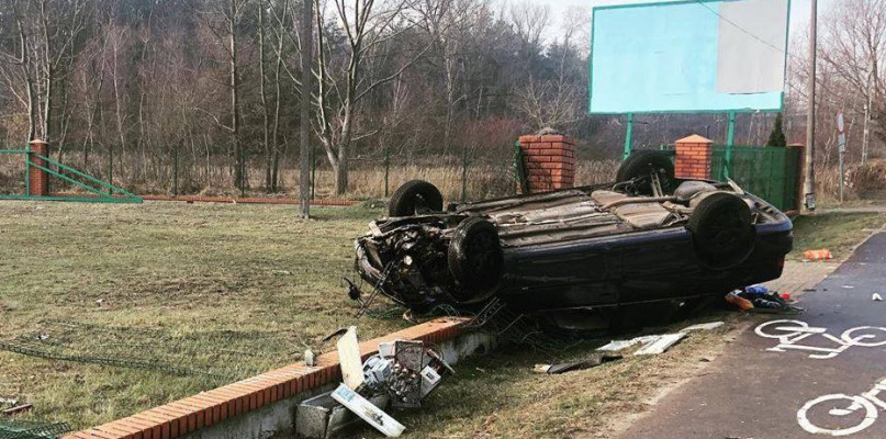 Płocczanie przejeżdżający w weekend Grabówką natykali się na niecodzienny widok. Na dachu leżał samochód osobowy.