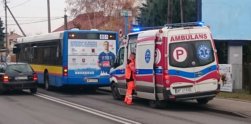 Zdarzenie miało miejsce na pasie w stronę Podolszyc na tzw. starej Wyszogrodzkiej. Jak dowiedzieliśmy się od rzecznika płockiej policji, Krzysztofa Piaska, ze wstępnych ustaleń wynika, że kierowca autobusu linii nr 19 Komunikacji Miejskiej musiał gwałtowanie hamować, aby nie zderzyć się z samochodem, który wyjechał mu z boku. Auto, które wymusiło pierwszeństwo, nawet się nie zatrzymawszy, pojechało dalej. Tymczasem na skutek nagłego hamowania, w autobusie przewróciła się 72-letnia pasażerka. Na miejsce przyjechała karetka pogotowia i policja.