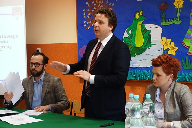 Wiceprezydent wprowadził wszystkich w plany modernizacji kompleksu sportowego przygotowane przez biuro architektoniczne. Koncepcja obejmuje zakresem budowę boiska wielofunkcyjnego z bezpieczną, poliuretanową nawierzchnią, na którym można grać w koszykówkę, piłkę siatkową, piłkę ręczną i nożną, badmintona, do tego kort tenisowy o nawierzchni z trawy syntetycznej do gry w tenisa ziemnego (singiel i debel). Przewidziano plac zabaw z piaskownicą, bujakami i huśtawkami, tor wrotkarski, ławeczki, chodniki. Mieszkańcy z niektórych osiedli mogliby tylko pozazdrościć takiego miejsca do spędzania czasu. - Państwo sami zwracali się do nas, aby ten teren zyskał wyższy standard. Na decyzję mamy czas do połowy kwietnia, a w sytuacji kiedy pojawiają się skrajne opinie, pytamy czy coś należy skorygować – tłumaczył Jacek Terebus. - Nie chcemy was uszczęśliwiać na siłę.