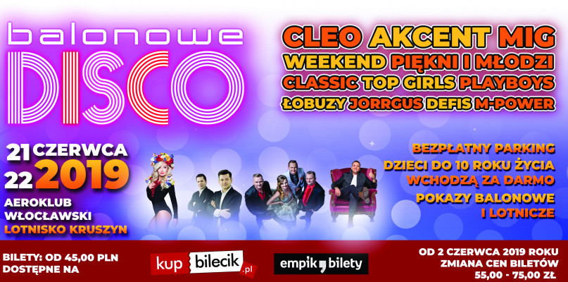 Balonowe Disco 2019 - największe gwiazdy muzyki disco polo wystąpią na lotnisku w Kruszynie pod Włocławkiem! Imprezy, na której pojawi się cała śmietanka polskich gwiazd muzyki disco - polo nie można przegapić!