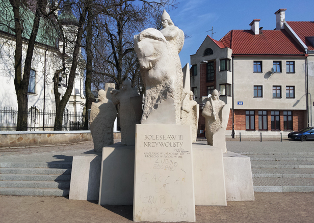 O pomazanym markerem w cokole polskiego władcy pisaliśmy dziś wczesnym popołudniem. Ratusz zapowiedział jak najszybsze uporanie się z bohomazami. Okazało się, że zdecydował się jeszcze dziś podjąć próbę usunięcia śladów prymitywnej ekspresji twórczej wandali i zlecił pracownikom Muniserwisu zadanie oczyszczenia cokołu, na którym stoi Bolesław Krzywousty.