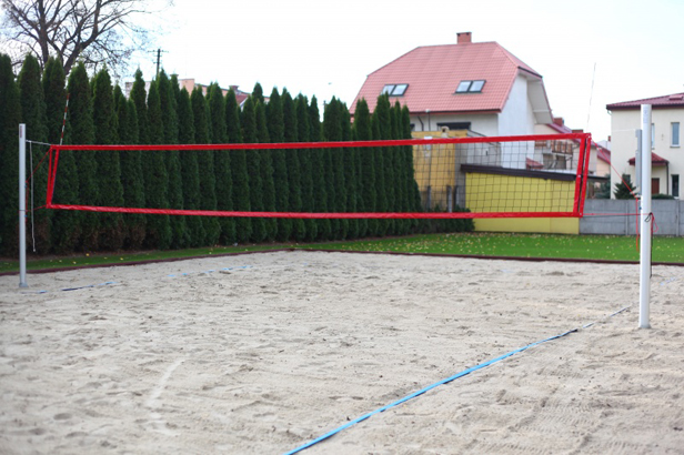 Jak pisaliśmy, mniejsze jest boisko do gry w siatkówkę plażową - liczy 299 m kw., oczywiście wypełnia je piasek. Boisko do tenisa o nawierzchni z trawy syntetycznej zajęło powierzchnię ponad 478 m kw.