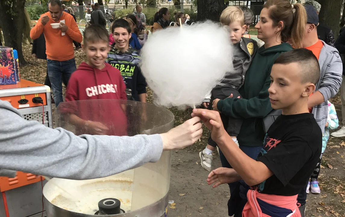 Był też pyszny poczęstunek, furorę zrobiła zupa. Od osób częstujących usłyszeliśmy, że to cebulowa, ale pózniej pojawiły się opinie, że to była fasolowa. Duża kolejka ustawiła się do waty cukrowej, było też bardzo dobre ciasto i cukierki czekoladowe.