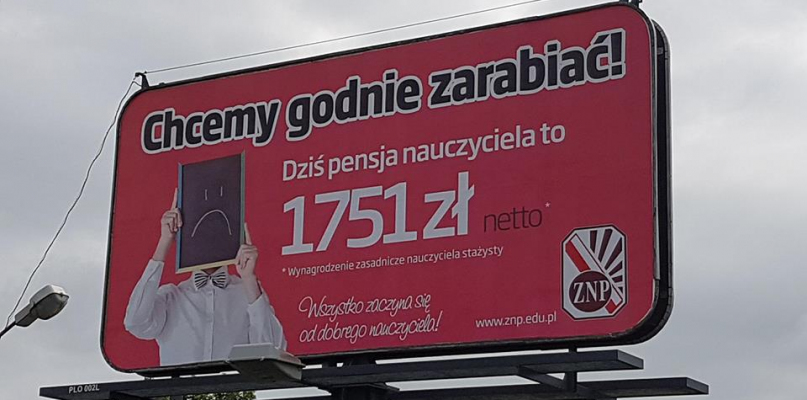 W Płocku pojawił się billboard z wyszczególnioną kwotą netto, którą teraz zarabia nauczyciel, rozpoczynający pracę w tym zawodzie. To kampania Związku Nauczycielstwa Polskiego. Co sądzą o niej nasi Czytelnicy?