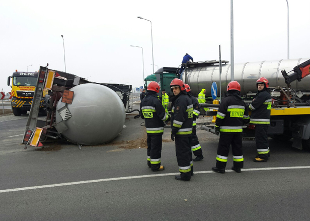 W czwartek rano na nowym rondzie przy tzw. małej obwodnicy przewróciła się cysterna przewożąca asfalt. Kierowca trafił do szpitala.