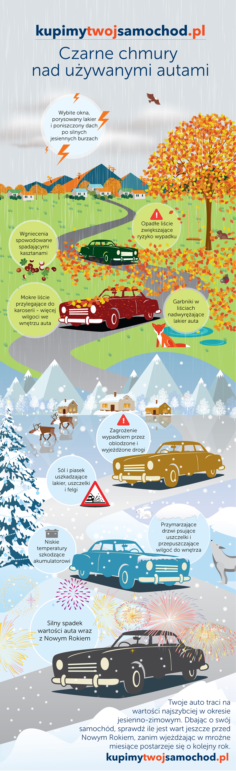 Jesień i zima postarzają nasze samochody, a lista mniejszych i większych niebezpieczeństw czyhających na nie zimową i jesienną porą rośnie z każdym dniem. Zobaczcie infografikę!