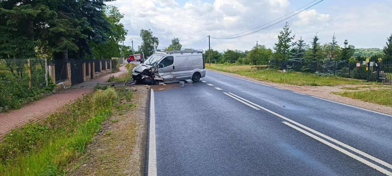 Czołowe zderzenie dwóch pojazdów. Droga krajowa jest całkowicie zablokowana