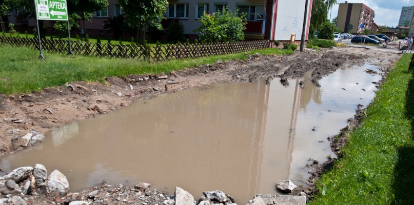 Niestety ulica nadal będzie pokryta błotem albo, co gorsza, ponownie zacznie przypominać płytki strumień. Na Traugutta kierowcy nie będą mieli łatwo, gdyż nie ma co liczyć choćby na tymczasowe zasypanie dziur, jakby chciał nasz czytelnik. Przypomnijmy, że remont ma potrwać - zgodnie z harmonogramem - do października. Zostaje tylko mieć nadzieję, że nie będzie już takiej ulewy, jak ta, która ostatnio zalała wiadukt na ul. Spółdzielczej.