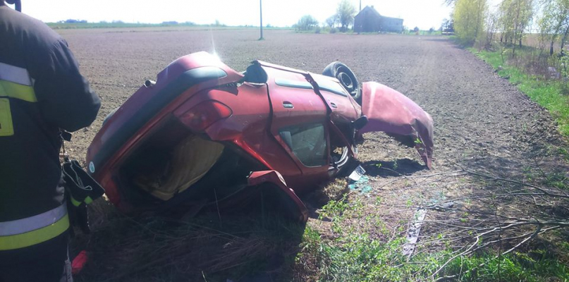 Do zdarzenia doszło około godziny 12.50 w miejscowości Karwosieki, gm. Brudzeń Duży. W wypadku obrażenia odniósł kierowca. Na miejscu działały trzy zastępy straży.