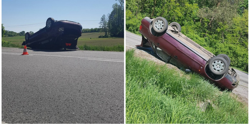 We wtorek około 13:00 auto osobowe dachowało i wylądowało na poboczu jezdni. 28-letni kierowca został przewieziony do szpitala.