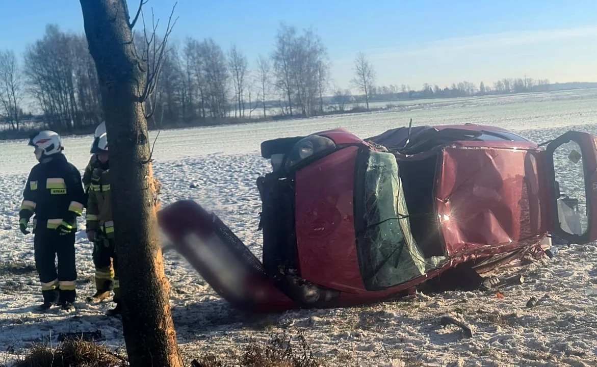 Poinformowali o nim m.in. strażacy ochotnicy z Drobina. Doszło tam do dachowania auta osobowego, które ostatecznie wylądowało na polu, kilkanaście metrów poza trasą Drobin - Bielsk.