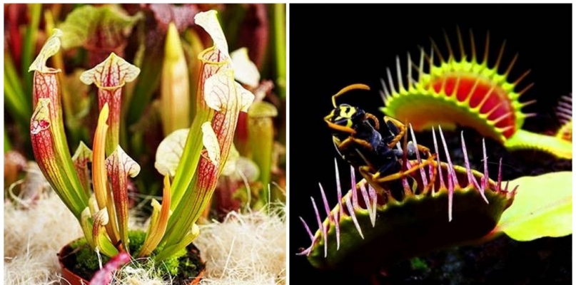 Na wystawie są dzbaneczniki, kapturnice czy muchołówki z liśćmi zakończonymi kolcami o długości 6 mm. Muchołówki wabią swoje ofiary słodkim nektarem i czerwoną barwą wnętrza. Wystarczy, że owad podrażni drobne włoski czuciowe, pułapka zaraz się zamyka. Zęby nachodzą na siebie. Z takiej klatki owadowi już trudno będzie uciec, chyba że jest bardzo mały. Większy jednak podrażni kolejne włoski, przez co klatka staje się dla ofiary coraz bardziej ciasna. Wraz z coraz mocniejszym zamykaniem się ścianek pułapki, zaczynają wydzielać się enzymy trawienne. Pułapka otworzy się dopiero „po posiłku”. Z kolei rosiczki mają na liściach kleistą substancję wabiącą ofiarę zapachem, do której owad się przykleja. Liście się wówczas zaginają, uniemożliwiając ucieczkę, a w konsekwencji dusząc ofiarę. Jej uprawa może pomóc w zmniejszeniu populacji much i komarów. Na kiermaszu znajdziemy również heliamphorę. Swoje ofiary przyciąga zapachem i kolorem, następnie ześlizgują się po krawędzi dzbanka i wpadają do środka, gdzie toną w wypełniającej wnętrze wodzie.