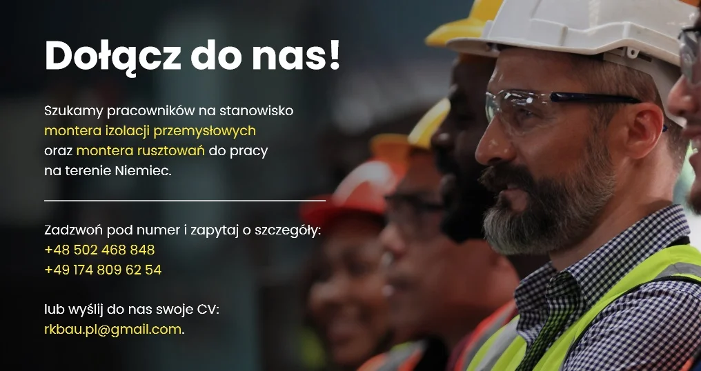 Szukamy monterów instalacji przemysłowych, przede wszystkim do pracy w parkach chemicznych i rafineriach w Niemczech - mówi Bartosz Bunikowski, właściciel firmy - Szukamy pracowników na stałe, całym rokiem. Mamy kilka dużych projektów, więc nie ma obaw, że praca skończy się po 3-4 miesiącach.