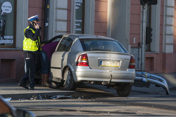 Jedną z takich stłuczek było zderzenie dwóch samochodów na skrzyżowaniu Sienkiewicza i Bielskiej. Z ustaleń policjantów, którzy akurat tamtędy przejeżdżali i dosłownie kilka sekund po zdarzeniu znaleźli się na miejscu wynika, że jadące od strony Bielskiej audi A6 z 60-letnim mieszkańcem Rypina za kółkiem wjechało na skrzyżowanie na czerwonym świetle i zderzyło się z jadącym Sienkiewicza oplem astra.