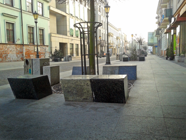 Tylko że na tym spójnym i jednolitym czymś udającym ławki nikt nie chce siadać, a i prognozowanego przez projektanta różnokolorowego tłumu, dla którego uporządkowane tło stanowi wystrój ławek, też jakoś nie widać!