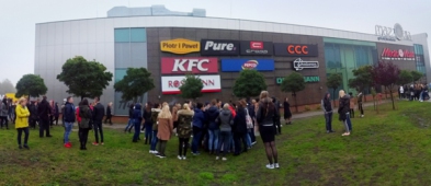 Jak relacjonuje nasz czytelnik, najpierw na piętrze przy restauracjach rozpuszczono sztuczny dym, na który zareagowały czujki i uruchomił się alarm. Ochrona pełniąca zmianę w piątek rano przystąpiła do ewakuacji klientów i najemców z budynku. Cała akcja przebiegła bardzo sprawnie i po kilku minutach wszyscy byli już na zewnątrz, na trawniku od strony Armii Krajowej. Ok. 9.20, mniej więcej po 40 minutach akcji, ewakuacja została odwołana, a ochrona skierowała wszystkich do głównego wejścia. Najpierw weszli najemcy, a następnie klienci.