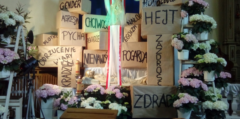 Niemal tradycyjnie dodatkowe przesłanie przy Grobie Pańskim zobaczyli parafianie z kościoła św. Dominika na Górkach. Nad grobem Chrystusa jest wypisanych kilkanaście haseł, wśród których można znaleźć "hejt", "LGBT" czy "gender". Czy tym razem proboszcz posunął się za daleko?