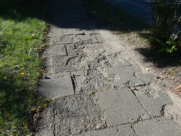 Nie lepiej będzie po drugiej stronie. Tam chodnik miejscami wygląda, jakby go ktoś utarł pumeksem, tylko w rozmiarze XXL. Nasze buty nagle lądują w jakiejś dziurze. Ale co tam, twardo idziemy dalej. Niestraszna nam jakaś pierwsza lepsza ostro wysłużona mielizna.