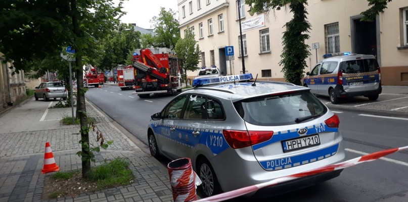 Od kamienicy przy ul. Sienkiewicza 35 oderwał się gzyms. Na miejscu interweniują służby: kilka wozów straży pożarnej, policja, straż miejska i Powiatowy Inspektor Nadzoru Budowlanego. Ulica jest zamknięta na odcinku od skrzyżowania z ul. 1 Maja. Na miejscu tworzy się duży korek, utrudnienia zaczynają się już od skrzyżowania z ul. Gradowskiego.