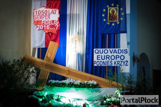 Wśród płockich kościołów z wymownych, bezpośrednio nawiązujących do aktualnych wydarzeń politycznych i społecznych w Polsce słynie przede wszystkim parafia na Górkach. Nie inaczej jest w tym roku - w centrum grobu leży przewrócony krzyż, nad nim wiszą dwie flagi: polska, która swoim hasłem „1050 lat Semper Fidelis. 2016...?” i unijna z Matką Boską Częstochowską pośrodku wieńca z gwiazd dwunastu, pod którym napisano: „Quo vadis Europo? Podnieś krzyż”. Obie wskazują na chrześcijańskie korzenie Polski i kontynentu i pytają o przyszłość, która je czeka.