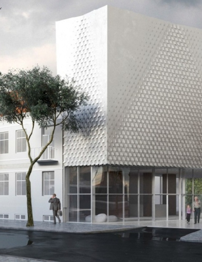 - Elewacja nowego budynku jest jego wizytówką i stanowi o wyjątkowej urodzie zaprojektowanej architektury – twierdzą autorzy koncepcji. - Jest to projekt indywidualny pomyślany jako mozaika tytanowo – cynkowych połyskliwych łusek o kształcie zbliżonym do trójkąta.