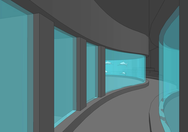 Pierwsza kondygnacja ma zostać całkowicie zmodernizowana. Przewidziano dwie połączone ze sobą sale ekspozycyjne do oglądania bogactwa płockiego zoo z polskich rzek, Morza Bałtyckiego. W tym celu staną tam żelbetonowe, wodoszczelne zbiorniki (także zbiornik typu „touch pool” - karp koi), wyłożone od środka wygiętymi panelami z akrylu o grubości 10 cm w przypadku ryb z Ameryki Południowej, Afryki, Azji i zbiornika z rekinami. Pozostałe będą miały grubość 5 cm. Wszystkie zostaną wypełnione wodą słodką i słoną. Tuż obok znajdą się oddzielne pomieszczenia do obsługi tych zbiorników, filtrownia, pomieszczenia techniczne, toalety i szatnia. Wszystko razem zajmie powierzchnię 446 m2.