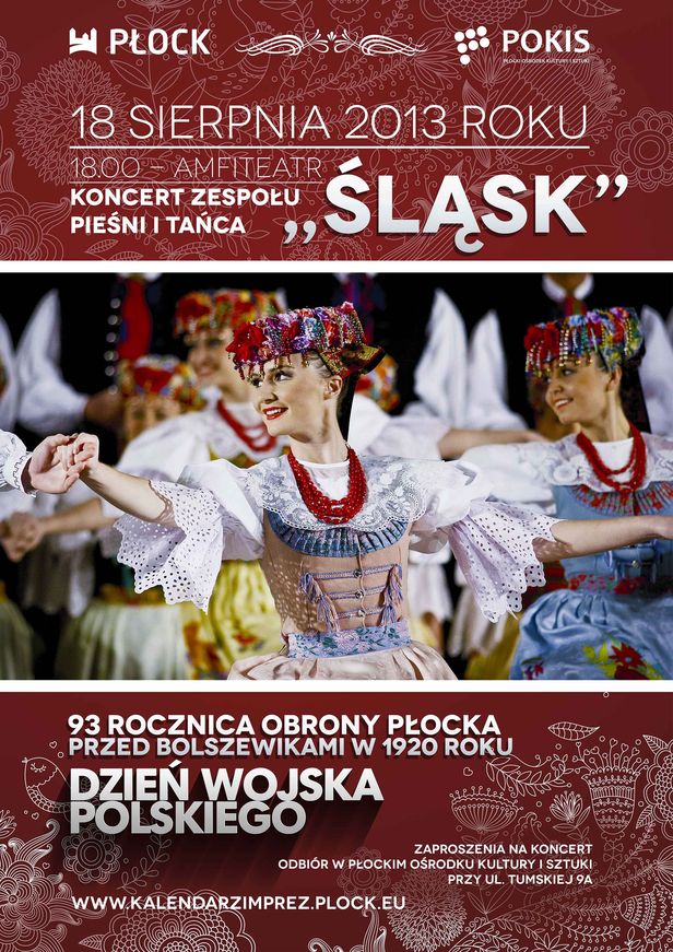 Na niedzielę 18 sierpnia zaplanowano składanie kwiatów w miejscach pamięci narodowej 1920 roku, uroczystości na cmentarzu garnizonowym oraz koncert w 93. rocznicę obrony Płocka przed bolszewikami w wojnie 1920 roku. Wystąpi w nim Zespół Pieśni i Tańca Śląsk. Wstęp na koncert – wolny, na podstawie zaproszeń dostępnych w Płockim Ośrodku Kultury i Sztuki.