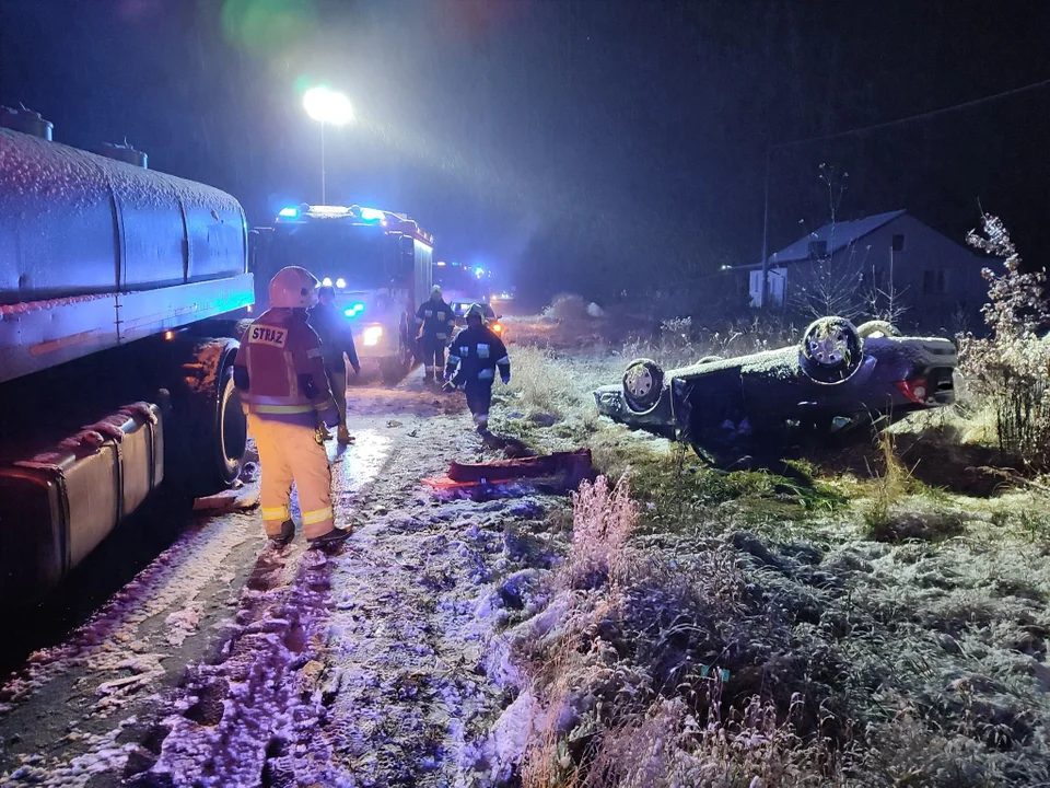 Kierująca osobówką, 44-letnia mieszkanka powiatu dobrzyńskiego, z obrażeniami ciała trafiła do szpital.