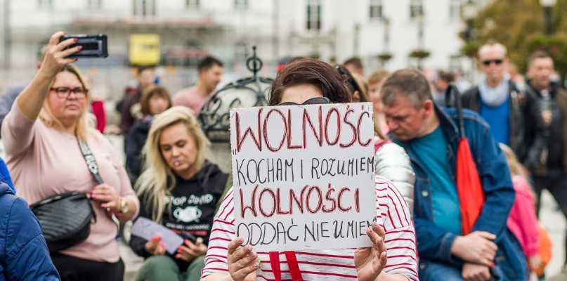 Przeciwnicy wprowadzania restrykcji lub osoby całkowicie negujące istnienie koronawirusa SARS-CoV-2 zebrali się o 13:00 przy małej scenie na Starym Rynku. Przez blisko godzinę przemawiało kilka osób, a następnie uczestnicy przemaszerowali ulicą Bielską na Nowy Rynek.