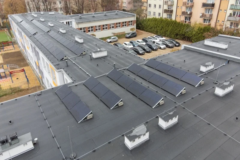 Na dachu szkoły pracuje też instalacja fotowoltaiczna.